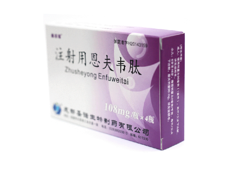 注射用恩夫韋肽使用前需要以無菌注射用水溶解,然后皮下注射給藥。如果溶解后不能立即使用,必須保存于2--8℃冰箱中,并在24小時內(nèi)使用。冷藏的溶液注射前必須加熱至室溫(例如握在手中5分鐘),并且注射前應(yīng)檢查確保溶液完全溶解,沒有顆粒物。