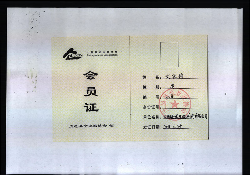 大邑縣企業(yè)家協(xié)會(huì)會(huì)員證